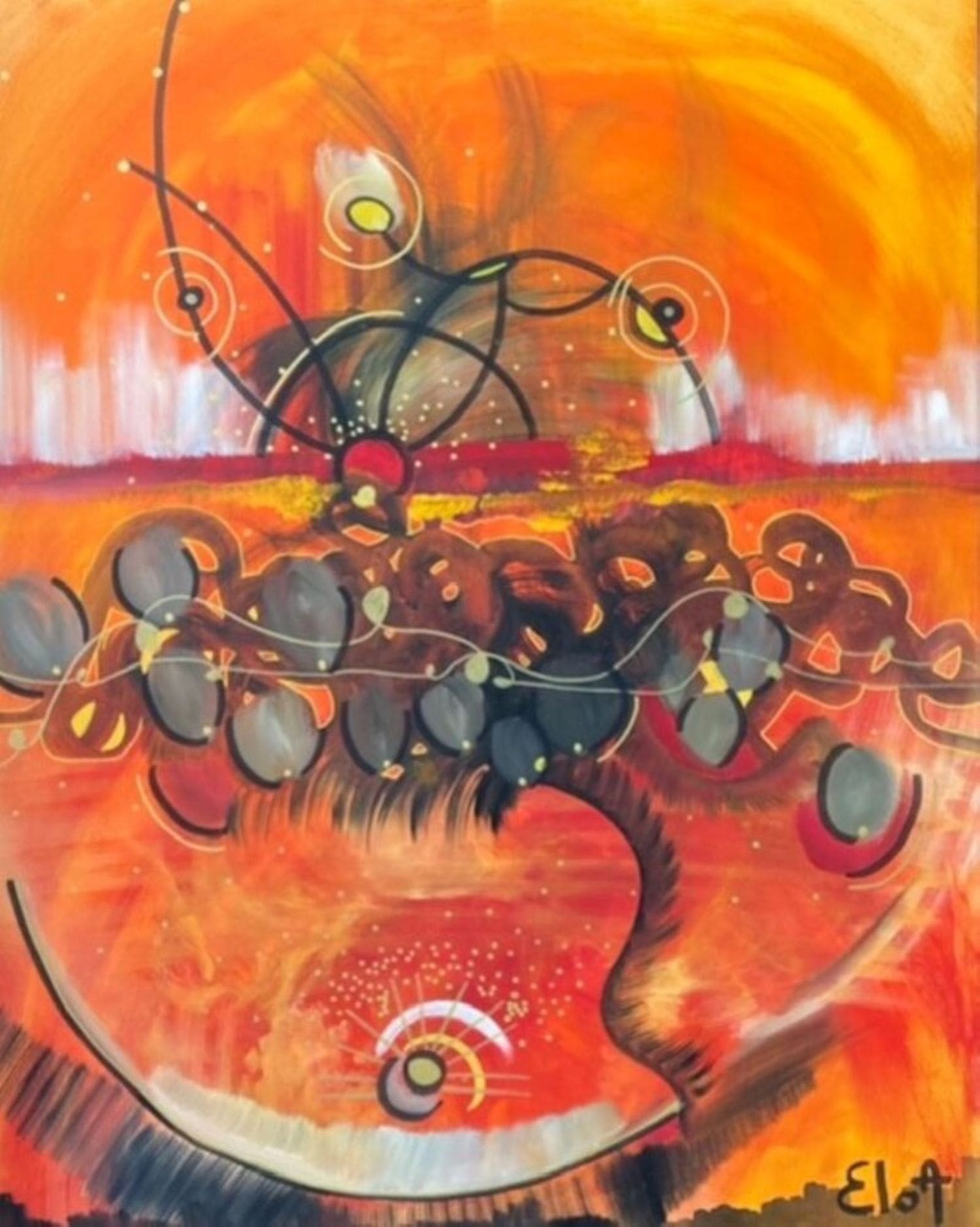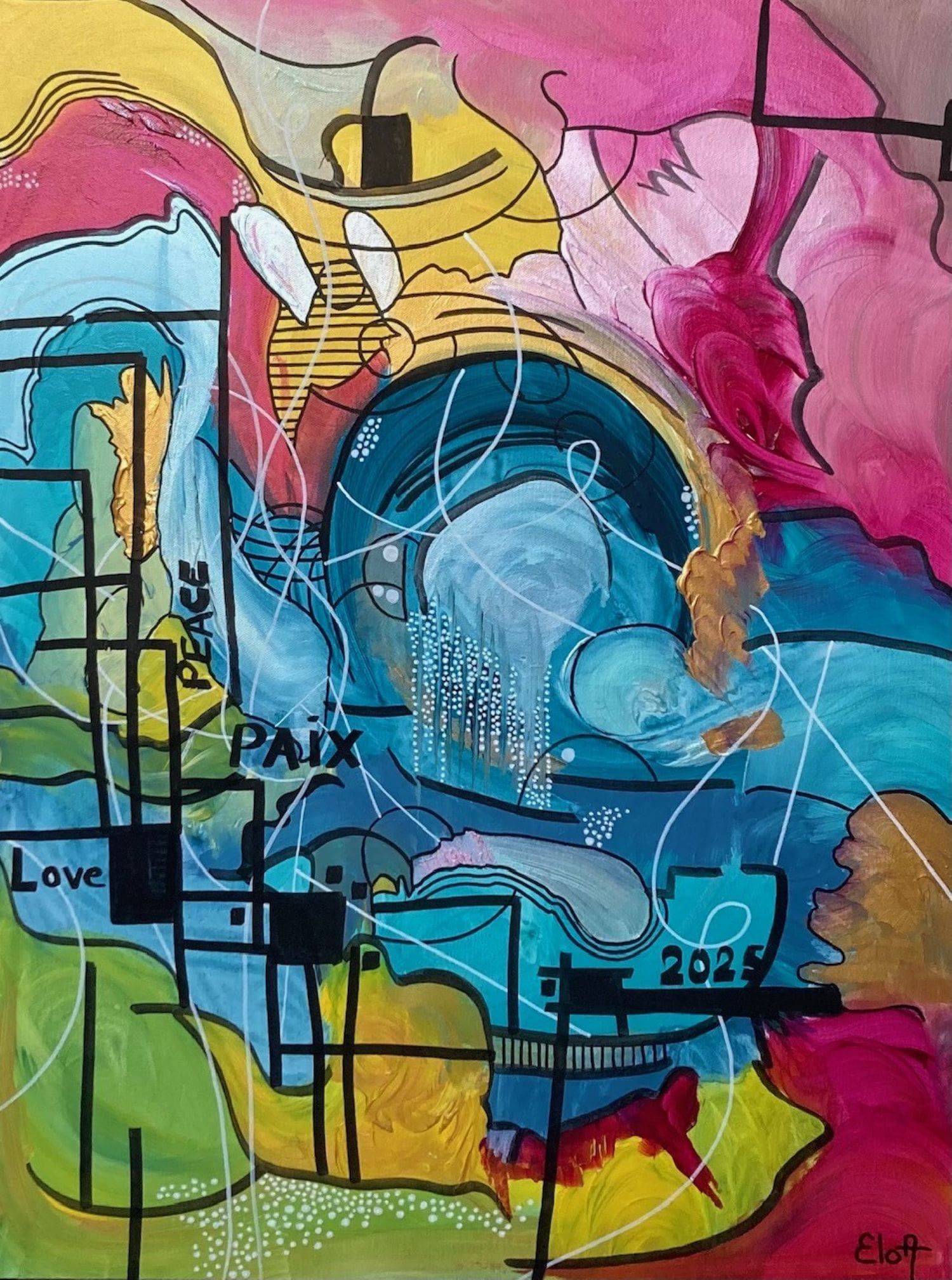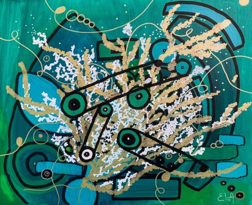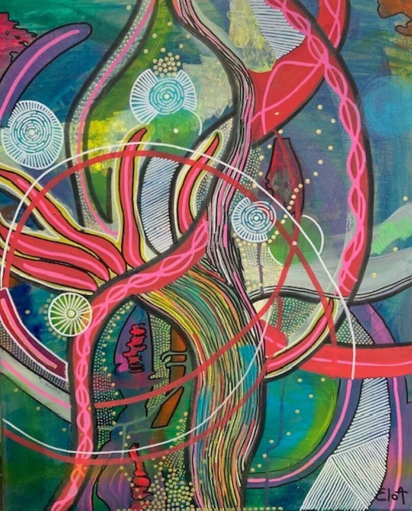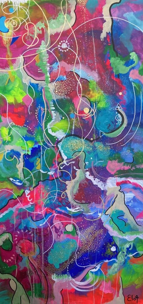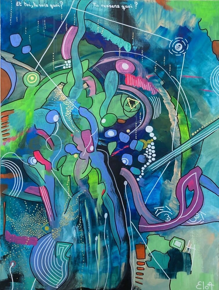 Chacune des toiles d’EloA transmet une vibration particulière. Des éléments en suspensions viennent créer une profondeur des espaces dans lesquels nos yeux divaguent vers une contemplation presque méditative.