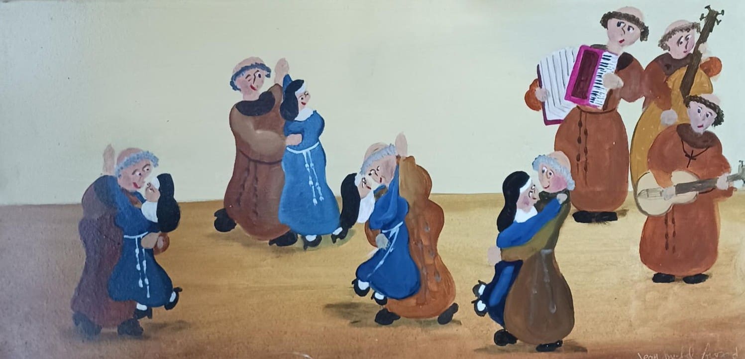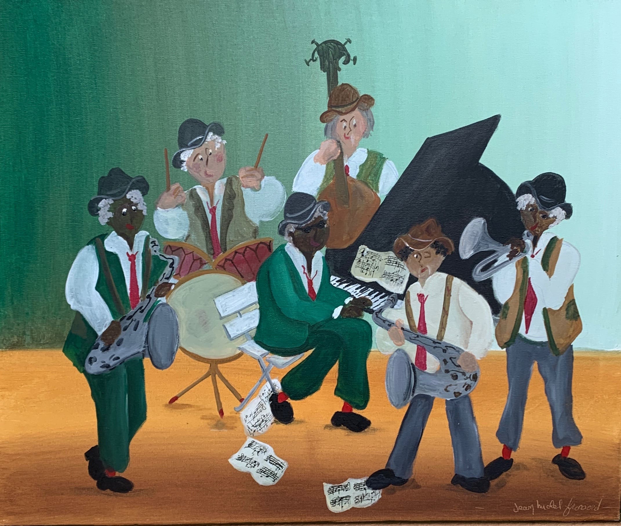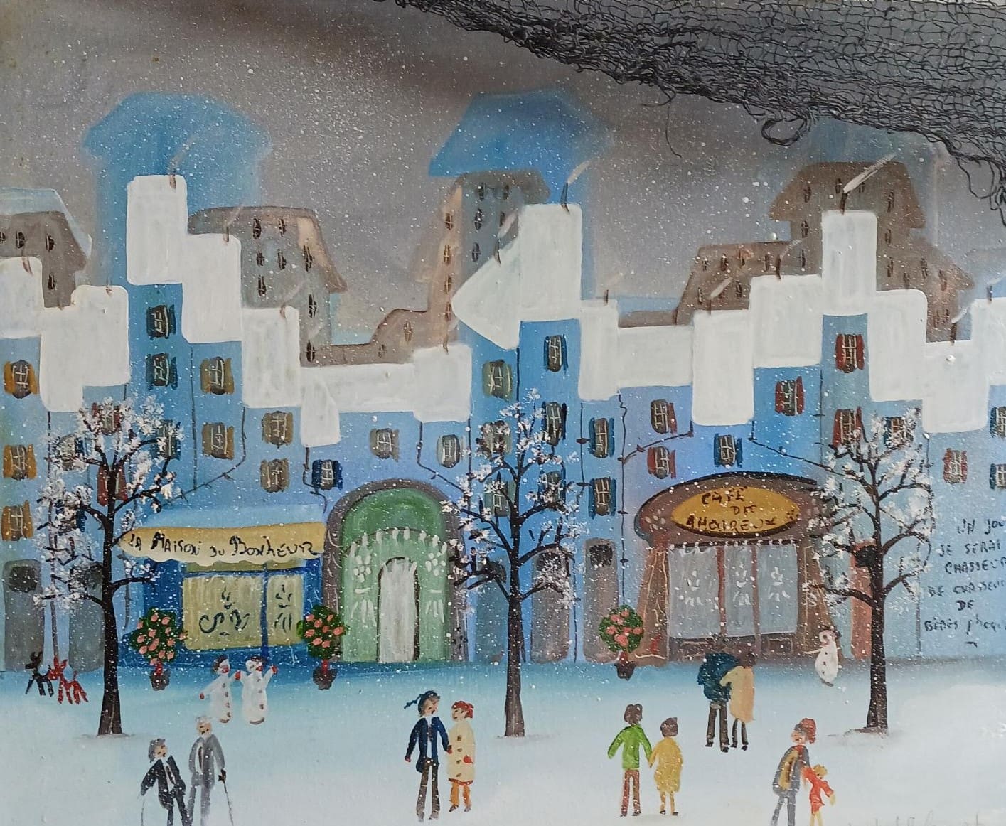 Jean Michel FROSSARD peint des instants de vie comme des scènes de rue, de cirque, de neige, mais aussi des portraits de famille, des musiciens, … Chaque thème est abordé avec humour et sympathie ce qui renforce notre attachement à ces moments de vie populaire.